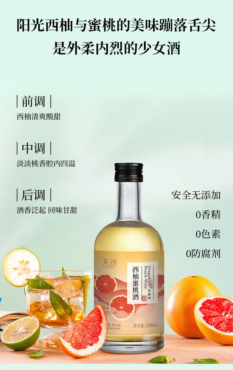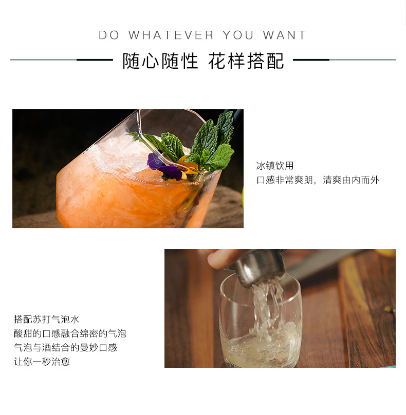 香甜果汁融入柔滑小酒,果香輕盈豐富,告別濃厚酒精感。宛若寶石的以色列紅心西柚鮮嫩多汁富含維C和多種維生素,為了保證果汁的鮮度采用低溫萃取方式,很好的保護了西柚的營養(yǎng)成分。